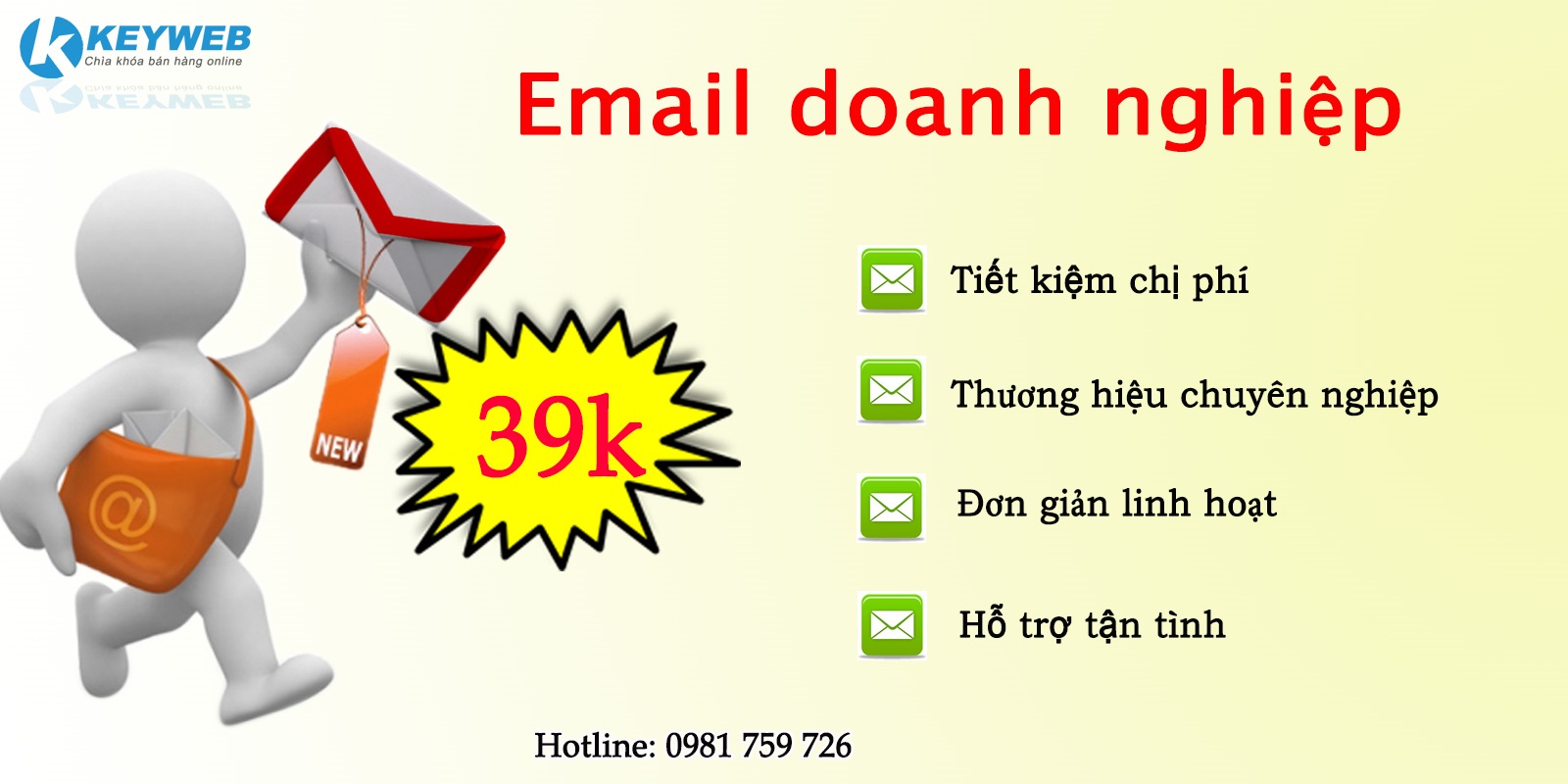 Nếu bạn là một cá nhân bình thường, thì những email bình thường như @gmail, @yahoo… là quá đủ với bạn. Nhưng nếu bạn là một nhà doanh nghiệp, hoặc chuẩn bị trở thành một nhà doanh nghiệp thì Keyweb khuyên bạn ngay lập tức hãy sở hữu cho mình một website và email doanh nghiệp.