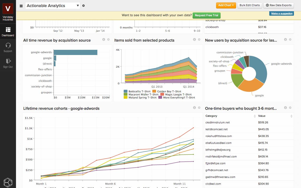 Đây có thể coi là data warehouse – Hệ thống cơ sở dữ liệu cho các doanh nghiệp thương mại điện tử. Công cụ này hỗ trợ việc gom dữ liệu tất cả vào 1 chỗ để xử lý: từ dữ liệu của magento, Google Analytic, Shopify hay thậm chí cả database. Một điều khá thần kỳ