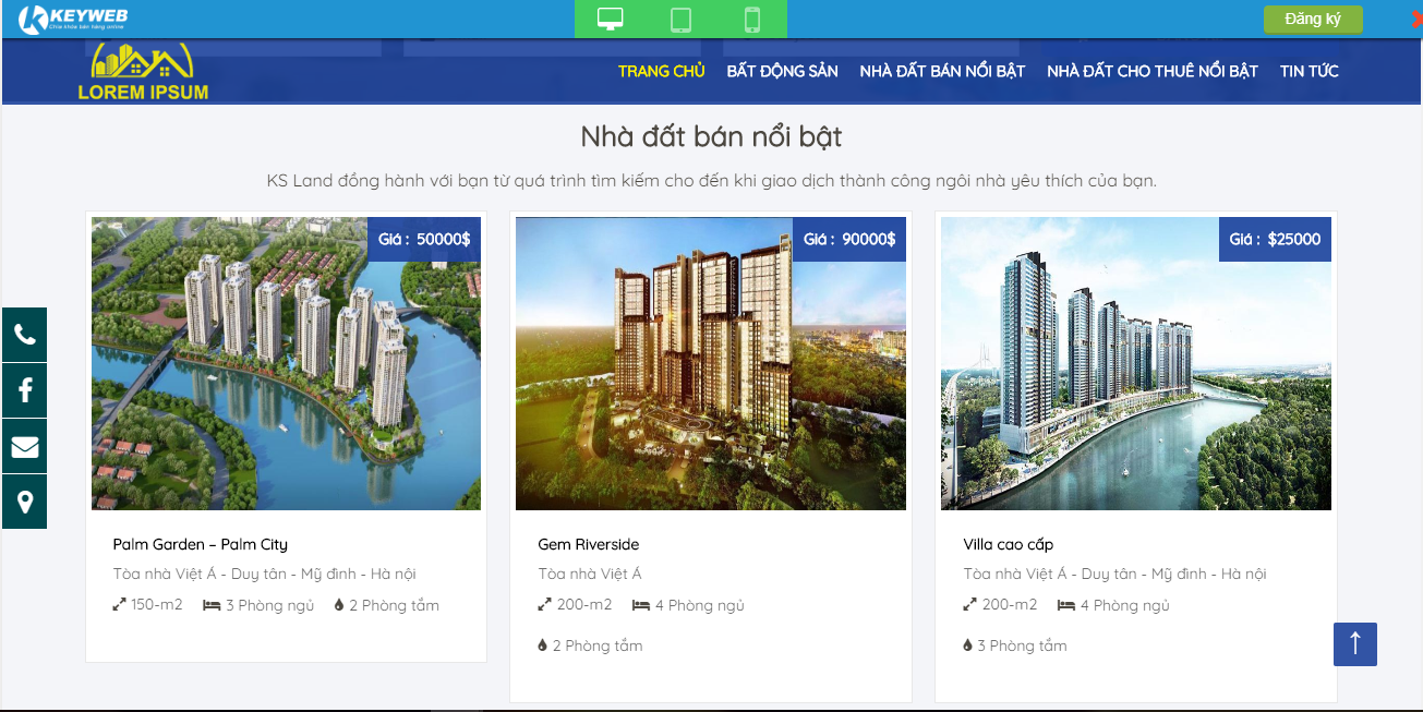 Với nhiều năm kinh nghiệm trong thiết kế website, Keyweb tự tin đã tạo ra hàng trăm mẫu website cho các doanh nghiệp kinh doanh trong lĩnh vực bất động sản và nhận được những phản hồi tích cực